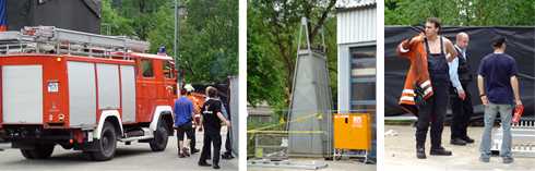 ... und zuzusehen, wie pünktlich 14:01 ein Umspannhäuschen in die Luft fliegt und gleichmal die Stromversorgung von ganz Oberndorf lahmlegt.