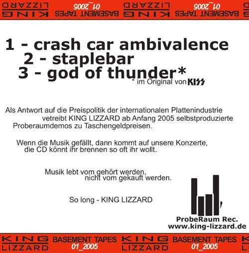 Aber auch die Musik ist ganz ordentlich, haha. Die einzigen vernünftigen KING LIZZARD-Aufnahmen mit Boheme, unserem damaligen (Gast-)Sänger.